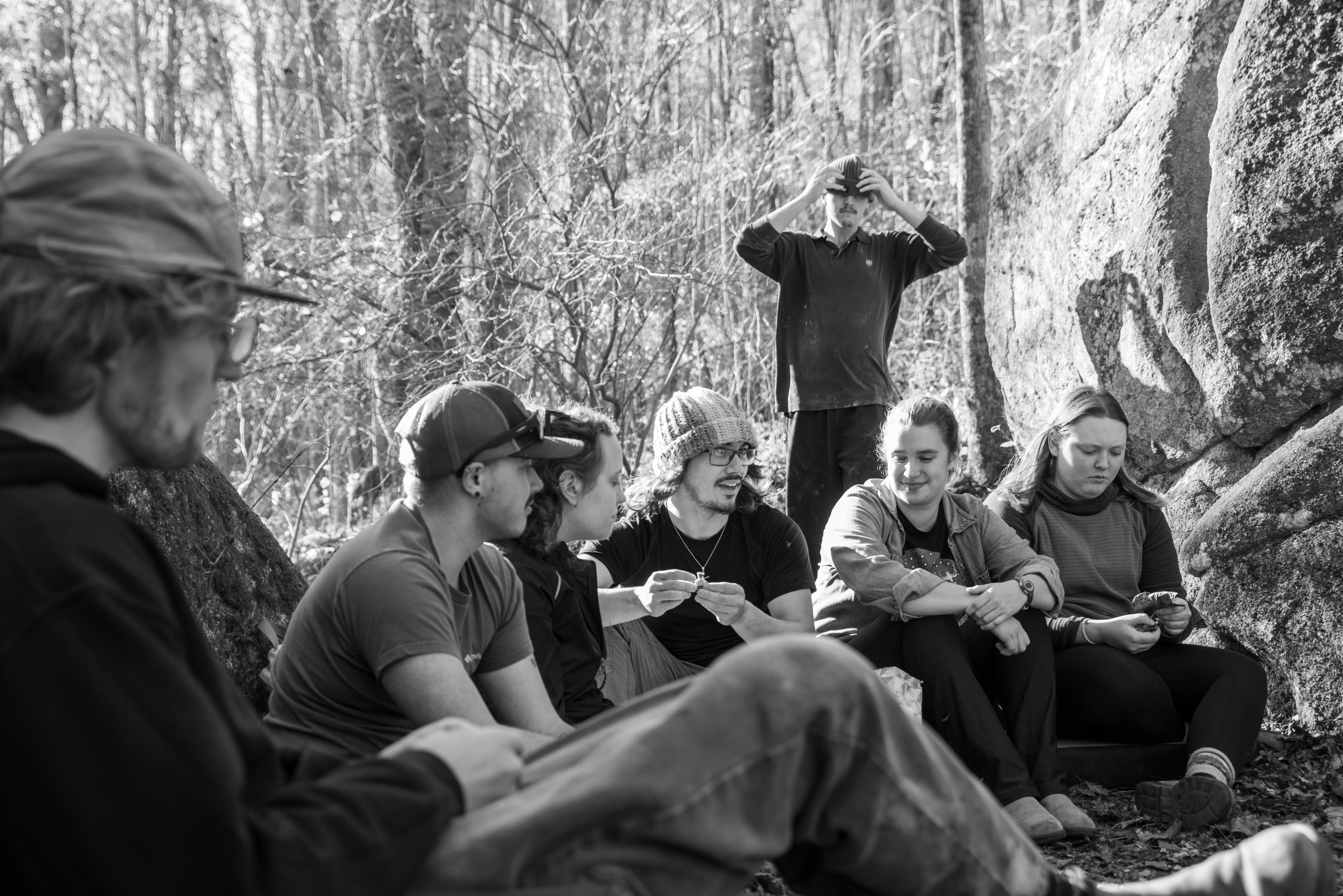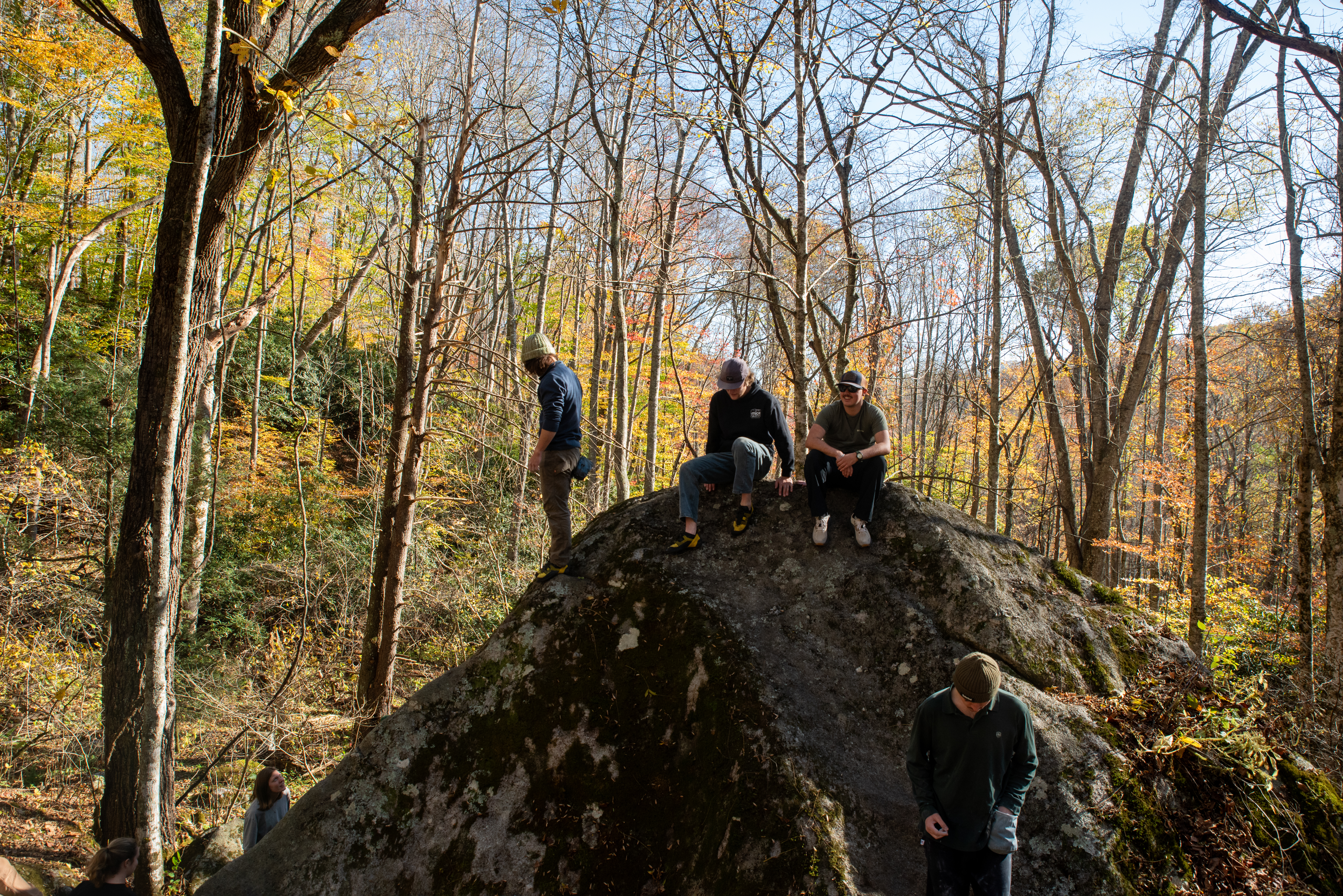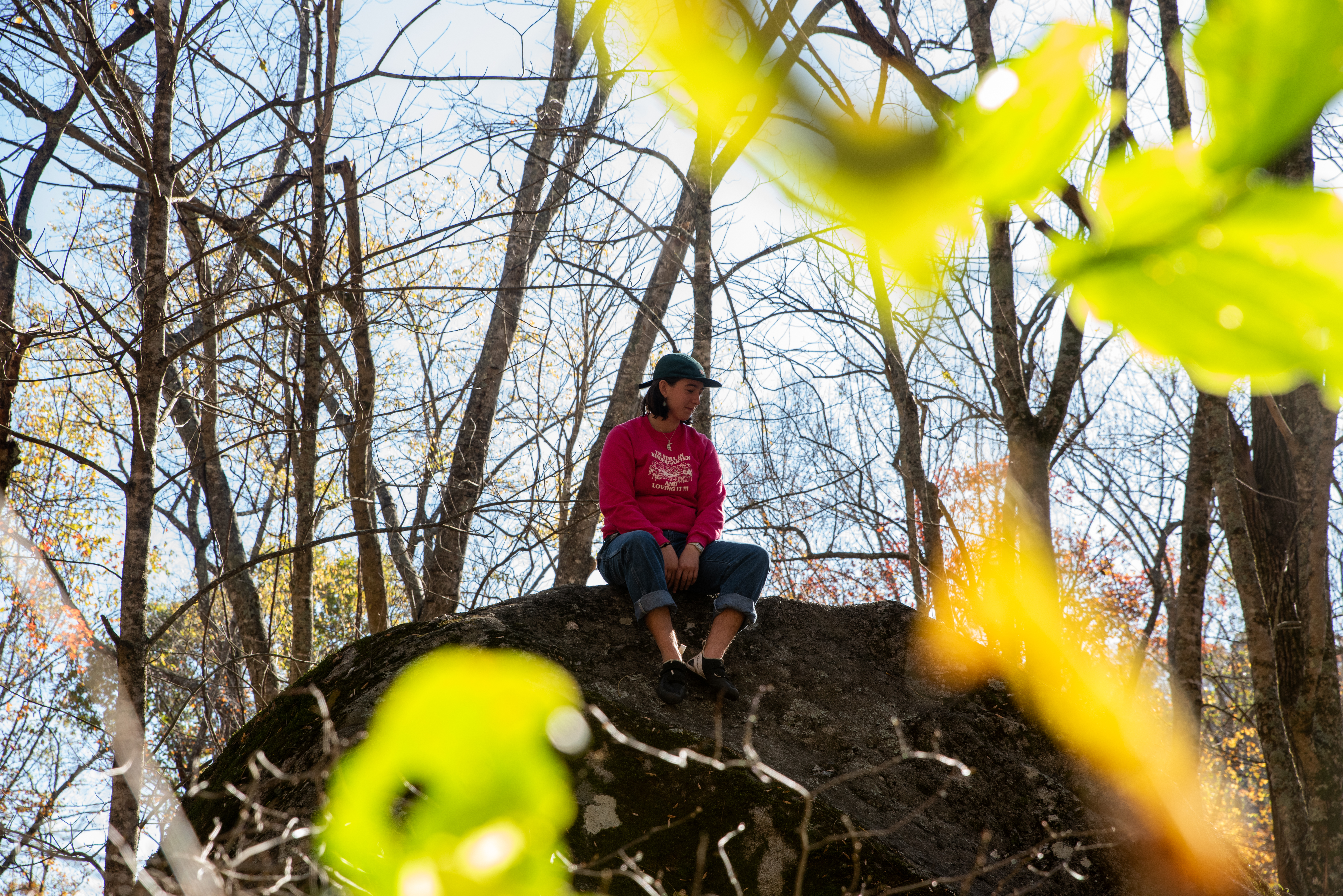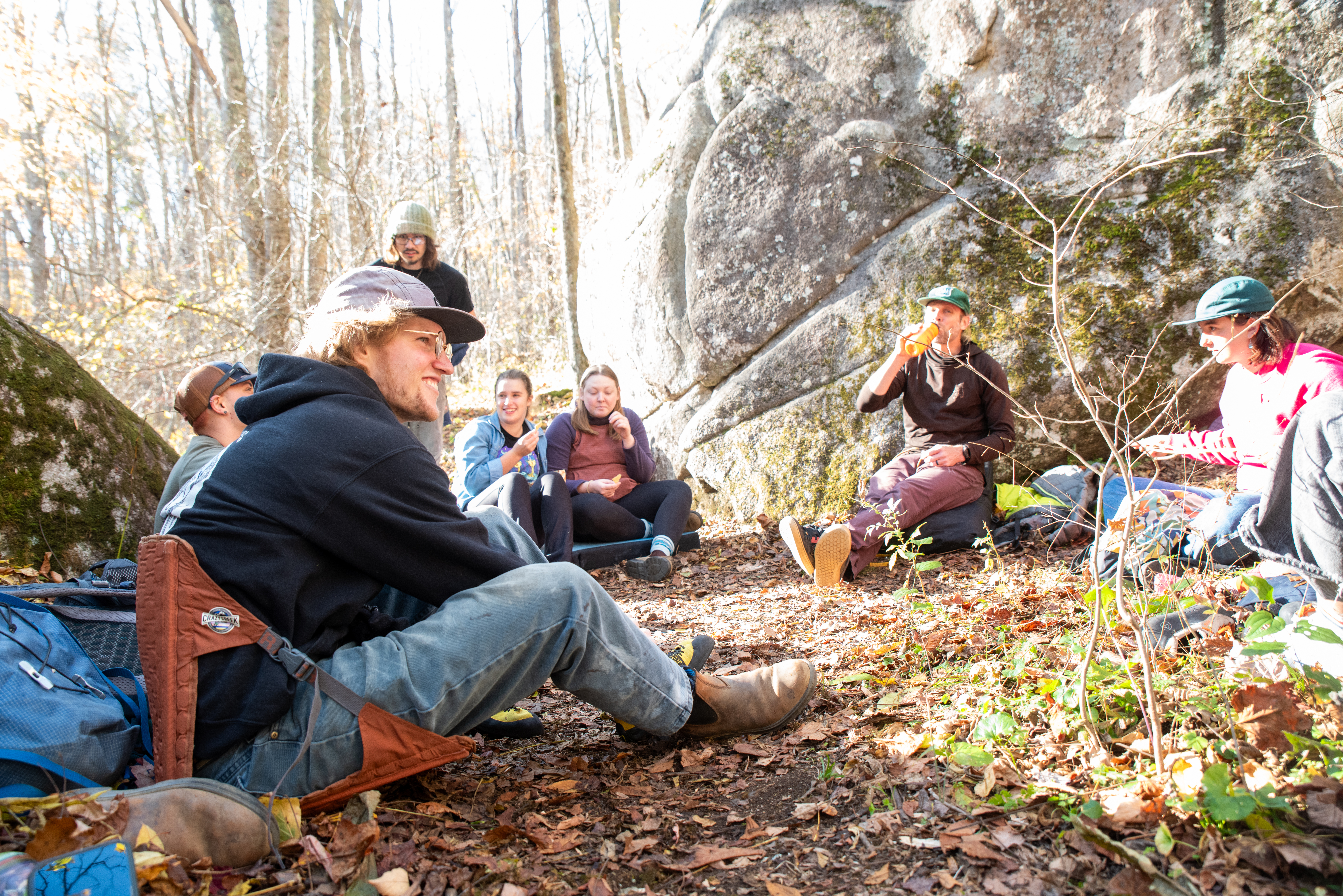 On this day, my outdoor leadership class went out past Cove Creek to meet up with Joey Henson; master of high country bouldering, artist, and community advocate. We ate chips and dip, heard some stories about what conservation meant in the 80s [it meant chaining yourself to trees while bulldozers wait for the go ahead]. After that the class went up the hill to where the boulders are. I forgot my sd card on this day, but Kristian Jackson graciously let me shot with his full frame Nikon. How refreshing it was to shoot on an SLR after struggling to fluidly use the viewfinder on the mirrorless a7ii. Something special was present in the light that afternoon. What a wonderful day. Enjoy these photos