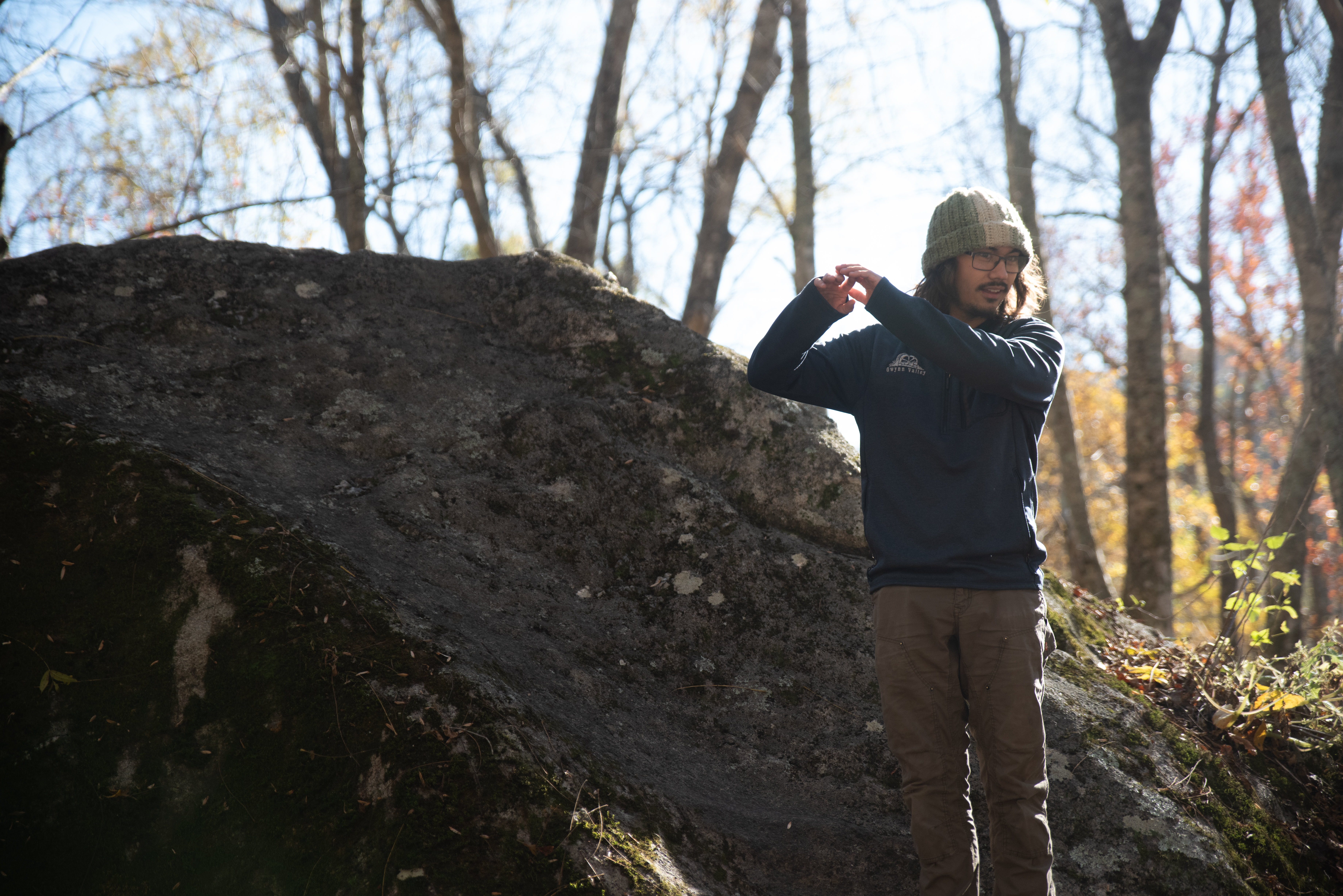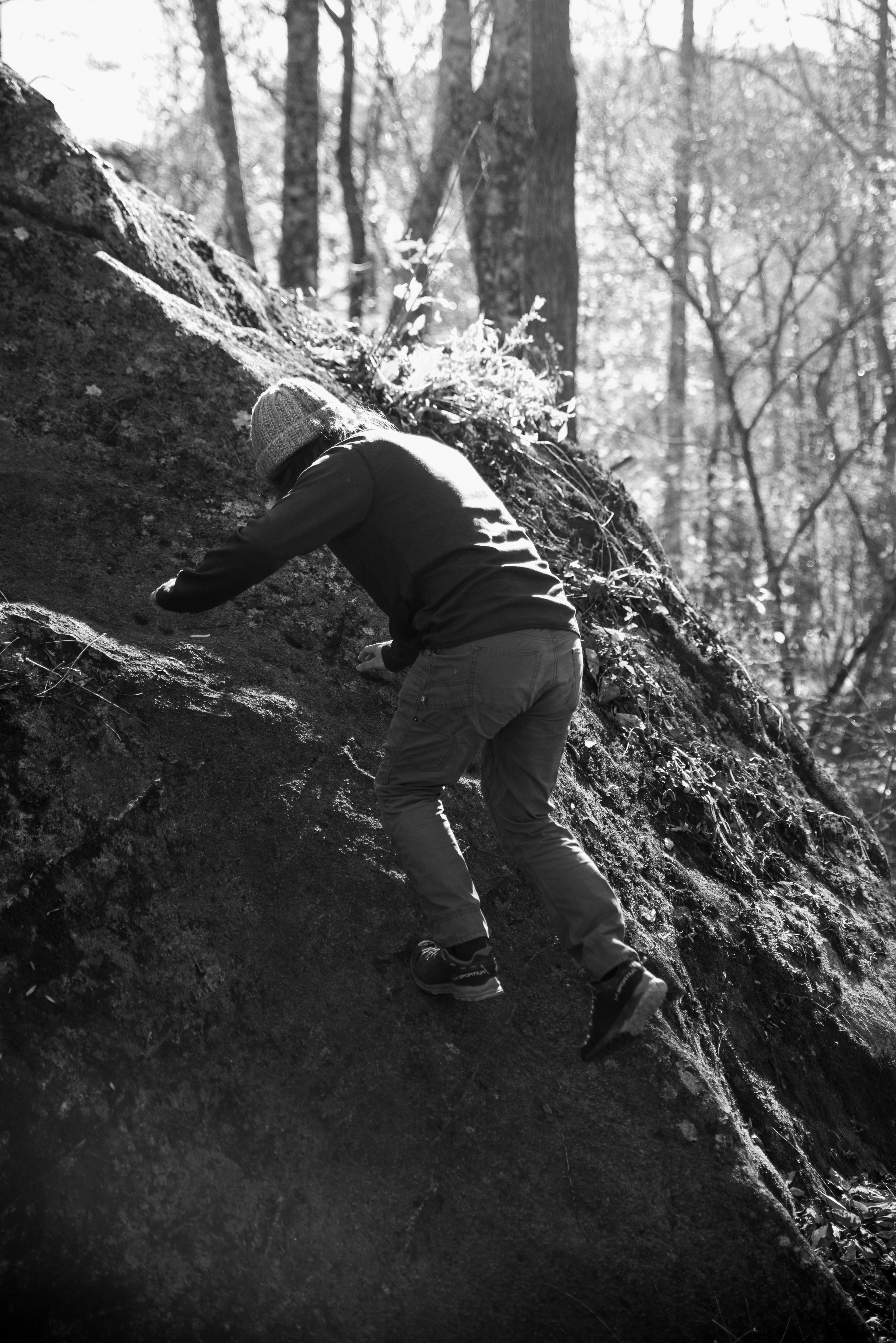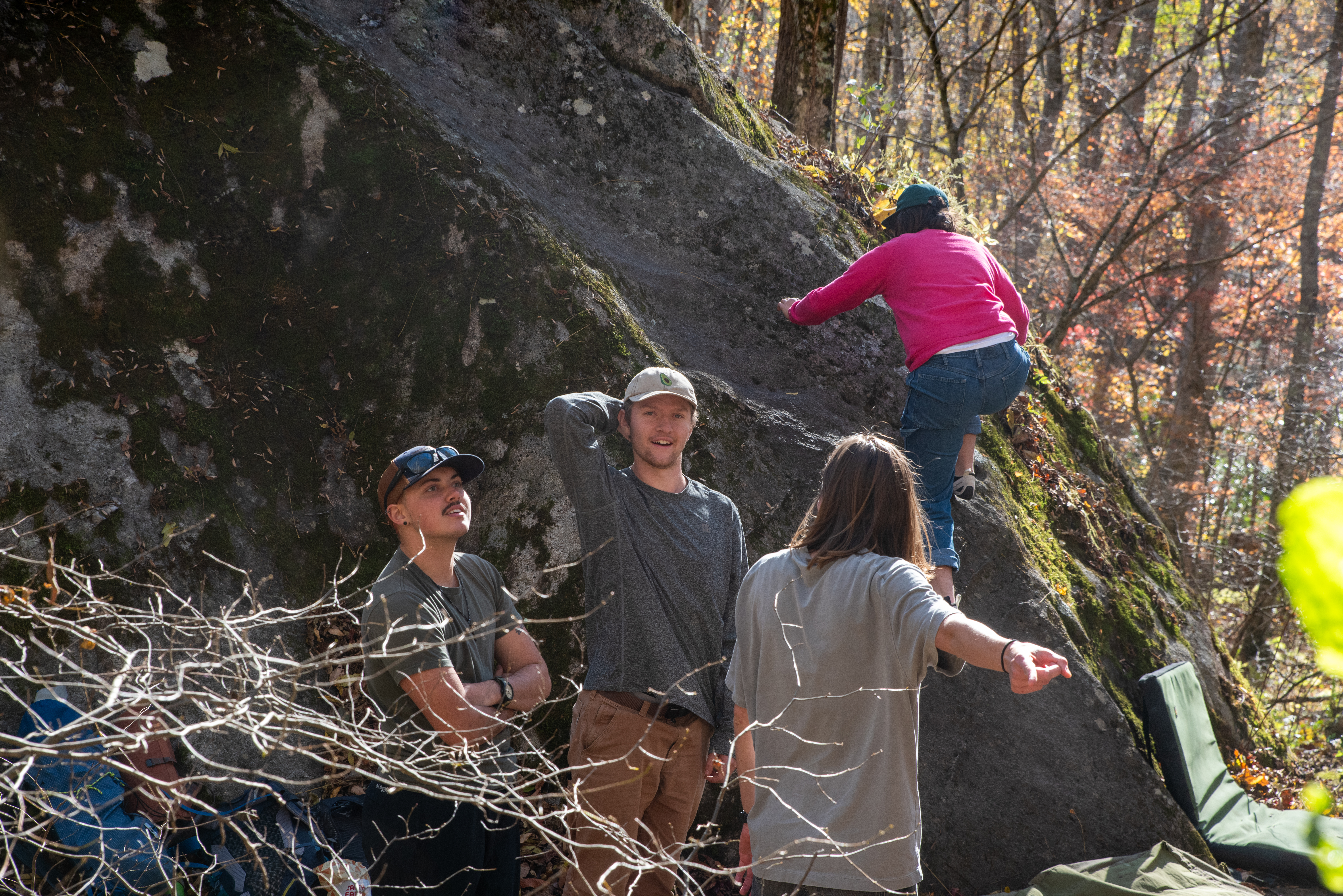 On this day, my outdoor leadership class went out past Cove Creek to meet up with Joey Henson; master of high country bouldering, artist, and community advocate. We ate chips and dip, heard some stories about what conservation meant in the 80s [it meant chaining yourself to trees while bulldozers wait for the go ahead]. After that the class went up the hill to where the boulders are. I forgot my sd card on this day, but Kristian Jackson graciously let me shot with his full frame Nikon. How refreshing it was to shoot on an SLR after struggling to fluidly use the viewfinder on the mirrorless a7ii. Something special was present in the light that afternoon. What a wonderful day. Enjoy these photos