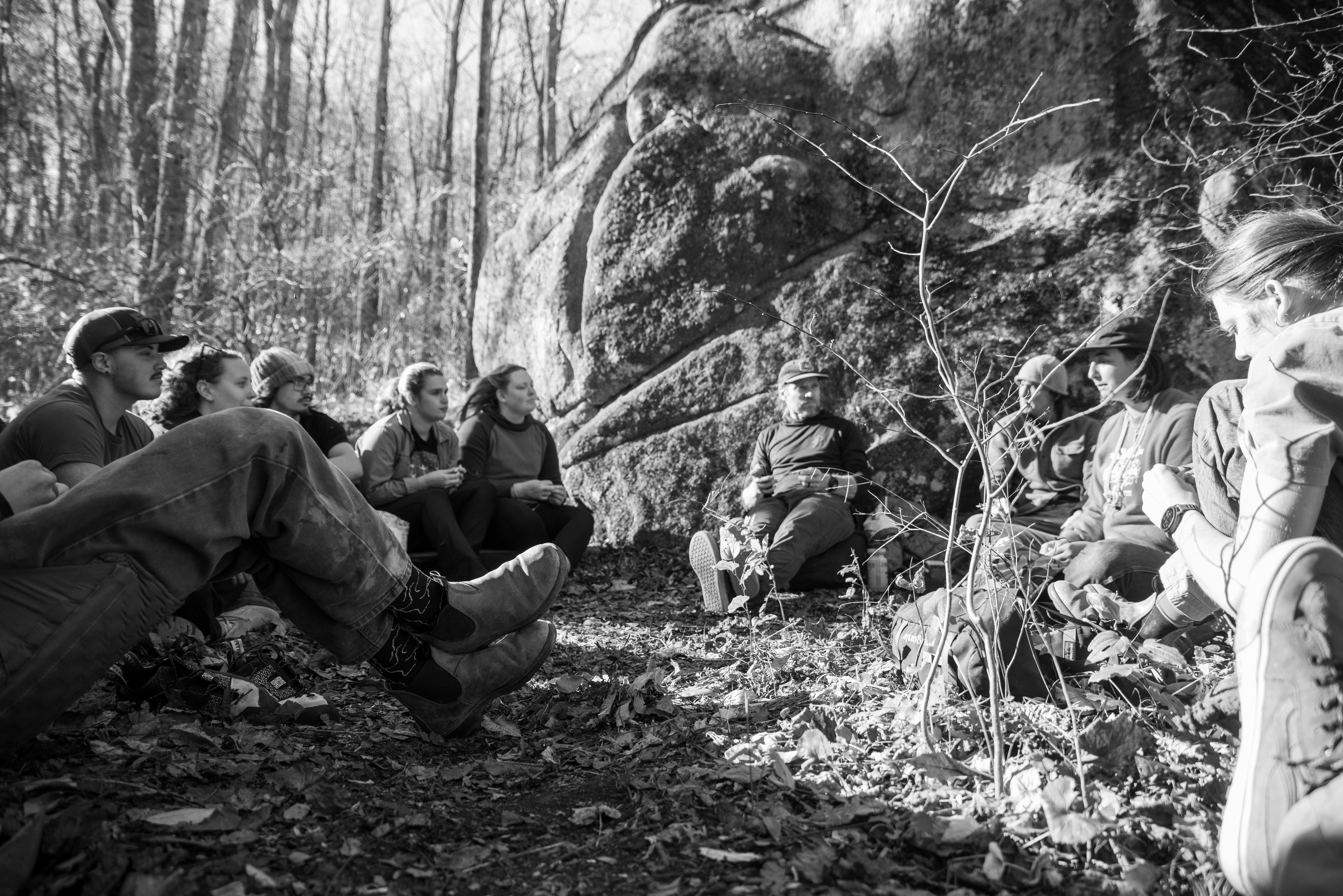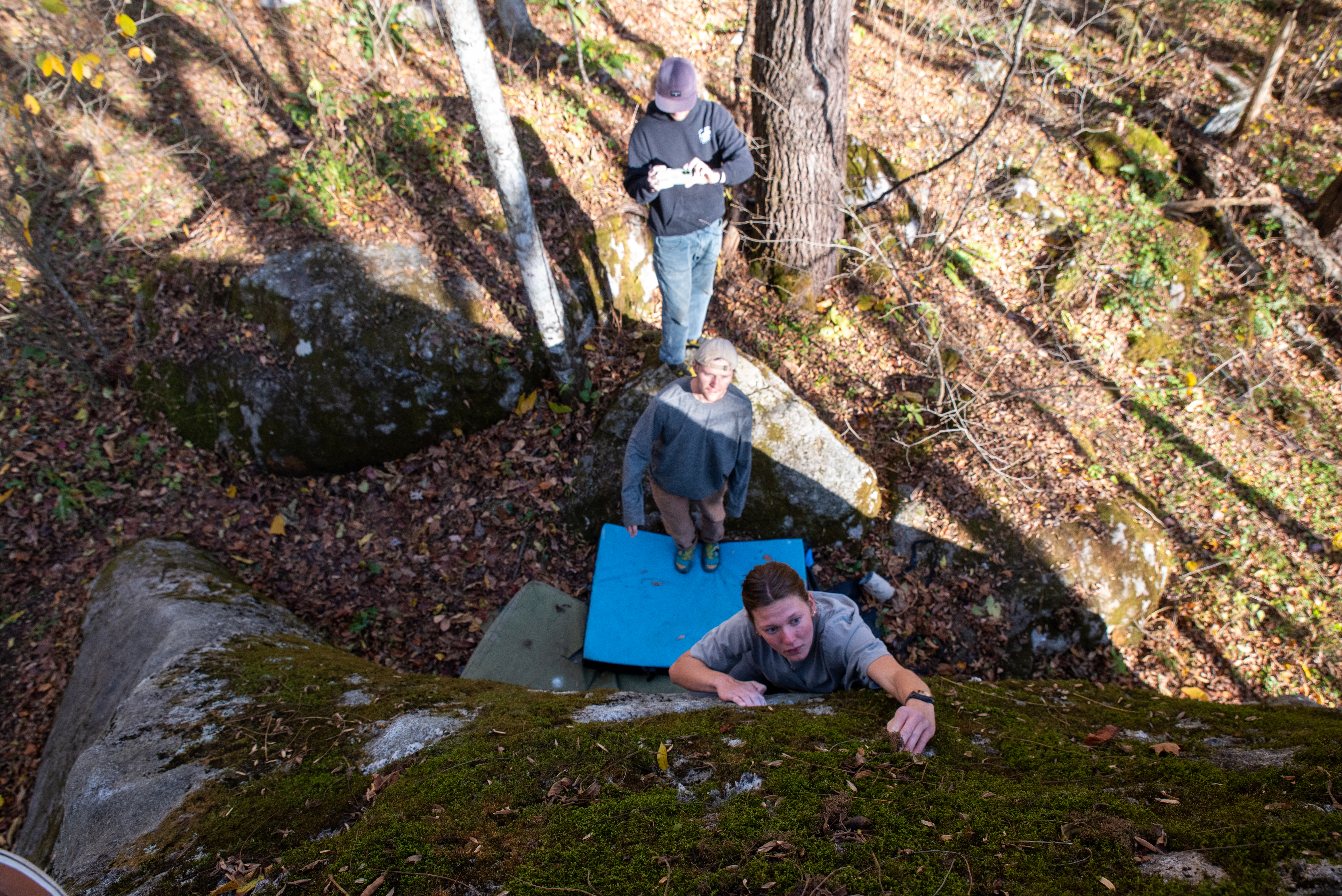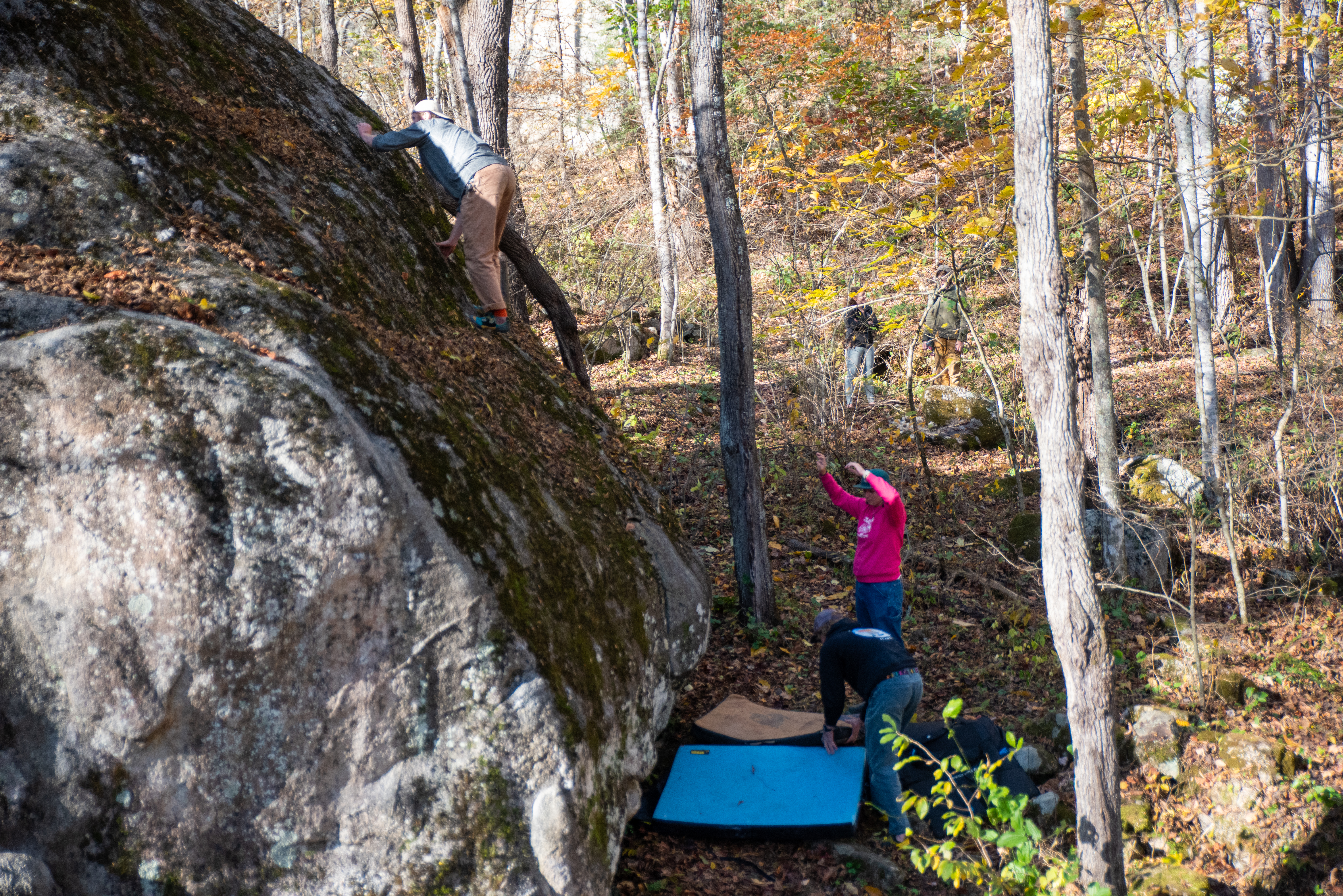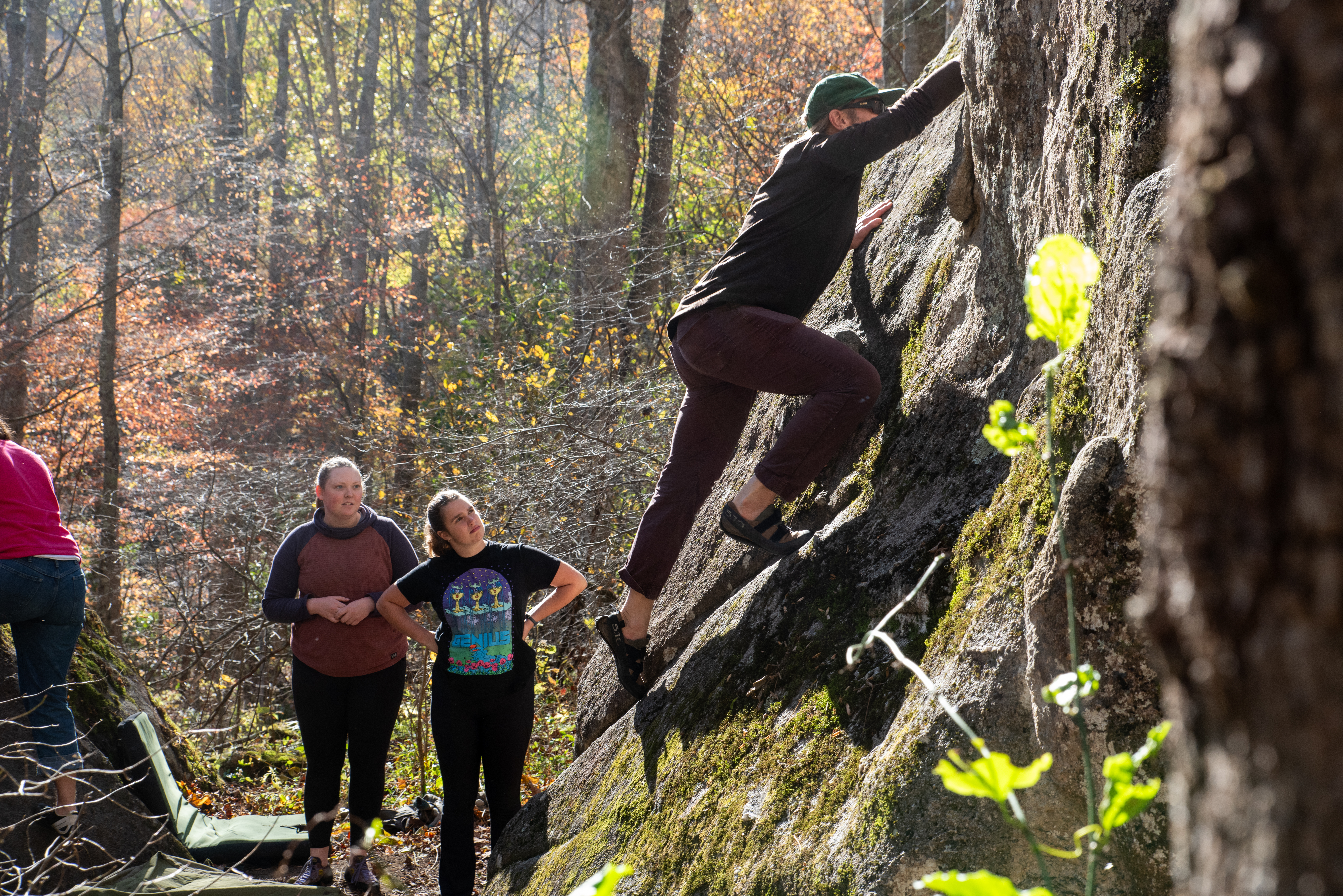 On this day, my outdoor leadership class went out past Cove Creek to meet up with Joey Henson; master of high country bouldering, artist, and community advocate. We ate chips and dip, heard some stories about what conservation meant in the 80s [it meant chaining yourself to trees while bulldozers wait for the go ahead]. After that the class went up the hill to where the boulders are. I forgot my sd card on this day, but Kristian Jackson graciously let me shot with his full frame Nikon. How refreshing it was to shoot on an SLR after struggling to fluidly use the viewfinder on the mirrorless a7ii. Something special was present in the light that afternoon. What a wonderful day. Enjoy these photos